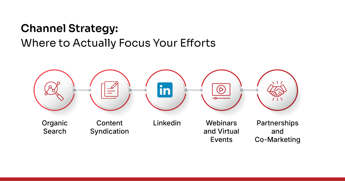 But do not spread too thin. Pick the channels where your specific audience actually spends time. If your buyers are not on Twitter, stop tweeting. If they are not reading industry publications, skip the syndication. Focus beats presence.