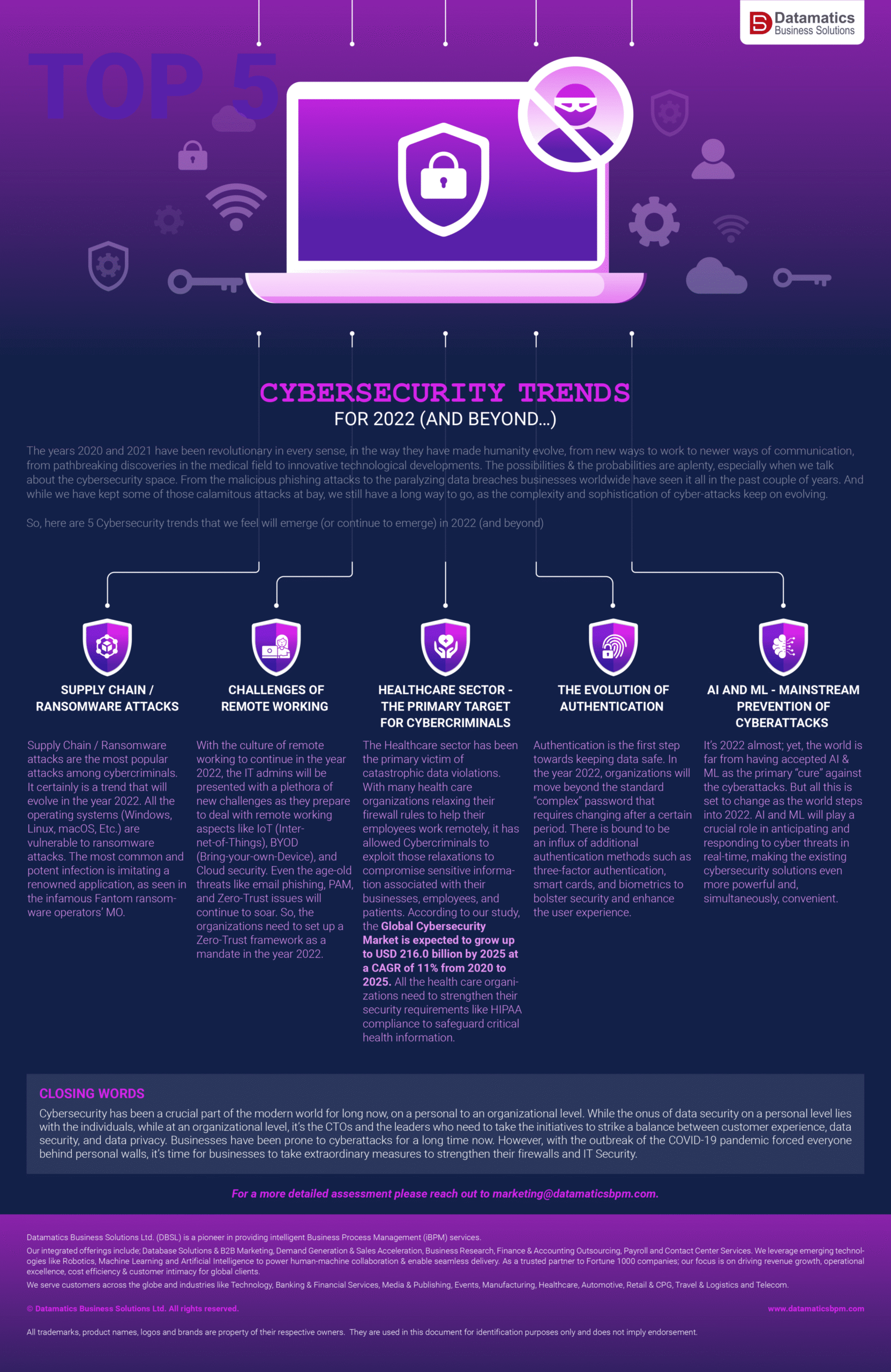 As we step into the year 2022, the world of cybersecurity will experience the emergence or the continuity of some new trends that will dominate the IT world for the foreseeable future. We take a closer look at 5 such trends in our latest infographic.